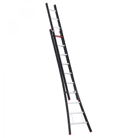 Die Aufsteckleiter schieben Sie ganz einfach aus, um große Höhen zu erreichen. Durch die Wandlaufrollen an den Enden (ab 2 x 12) ist die Leiter einfach an der Fassade entlang auszurollen.