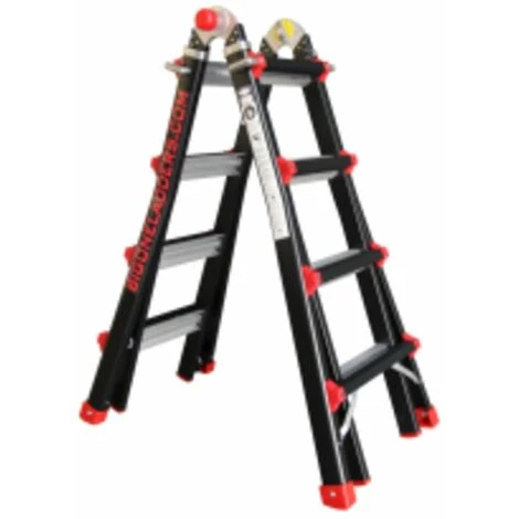 BigOne Teleskop-Klappleiter. Multifunktionale All-in-One-Lösung. Kann sowohl als Anlegeleiter als auch als Doppelstufenleiter verwendet werden (der innere Teil ist teleskopisch verstellbar), pro Sprosse einstellbar und für den Einsatz auf unebenen Flächen geeignet. Je nach Größe sehr kompakt im gefalteten Zustand. Ideal für Mechaniker, Installateure, Klempner, Maler und in der Industrie.