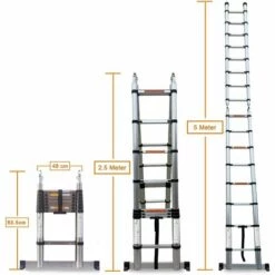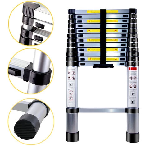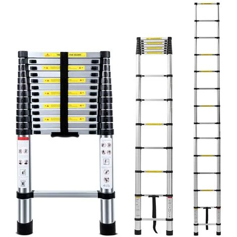 • Einfache Tragbarkeit: Bei ihrer vollen Länge von 4,4 m (14,4 Fuß) lässt sich diese Teleskopleiter auf ein Viertel ihrer Höhe einfahren, um sie einfach in Ihrem Auto oder anderen begrenzten Räumen zu verstauen.