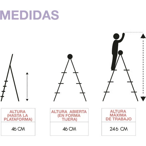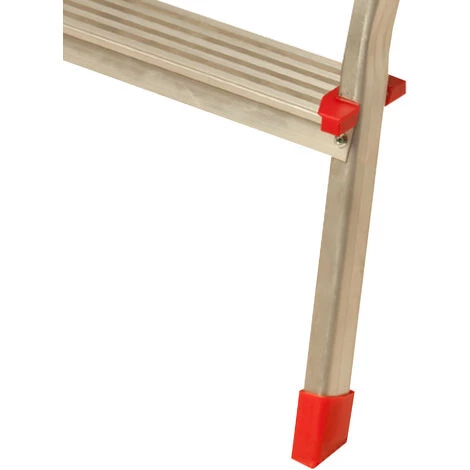 Leiternhocker für den häuslichen Gebrauch mit 2 Stufen, wobei die obere Stufe die Plattform mit einer breiten rutschfesten Gummiunterlage ist. Dieser Hocker ist ein unentbehrliches Zubehör, da er Ihnen den Zugang zu hohen Küchenmöbeln, Regalen oder oberen Schrankbereichen ermöglicht. Dank der Tatsache, dass es den komfortablen Vorteil des Zusammenklappens hat, können Sie es so lagern, dass es fast keinen Platz beansprucht, und Sie können es immer zur Hand haben, wenn Sie es brauchen. Er besteht aus Aluminium und Stahl, und seine Stufen haben rutschfeste Trittstufen für mehr Sicherheit bei Arbeiten in der Höhe. Es hat eine Struktur aus gekreuzten Streben auf der Rückseite, um der Struktur Stabilität zu verleihen, sowie rutschfeste Blöcke. Die maximale Belastung pro Schritt beträgt 150 kg. Mit dieser Leiter erhalten Sie eine maximal empfohlene Arbeitshöhe von 246 cm, geeignet für Reinigungsarbeiten, zum Bewegen, Aufhängen von Bildern, Auswechseln von Glühbirnen usw. Sehr nützlich für den Lagerraum, die Garage, die Küche oder jeden anderen Raum im Haus, wo Sie es brauchen. Dieser Hocker entspricht der Norm EN14183: Sie legt die Anforderungen fest, die Tritthocker in Bezug auf Design, Abmessungen, Materialien usw. erfüllen müssen. Haupterkmale: – Verwendung: Häuslich. – Garantie: 2 Jahre. – Leichtgewicht: 2,98 kg. – Offene Höhe: 46 cm. – Empfohlene maximale Arbeitshöhe: 246 cm. – Maße gefaltet: 10 x 48 x 69 cm. – Materialien: Aluminium und Stahl. – Farbe: Grau und rot verarbeitet. – Einfaches Falten.
