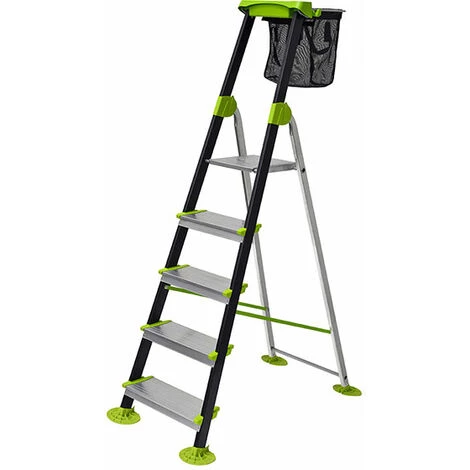 – Extra grünflächenschonende Leiterfüße, verleihen der Stehleiter auch auf unebenen und weichen Böden stabilen Halt.