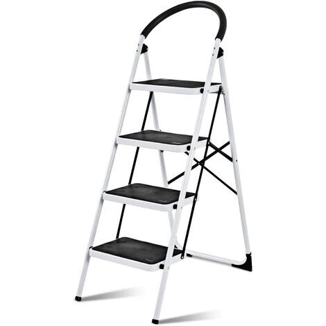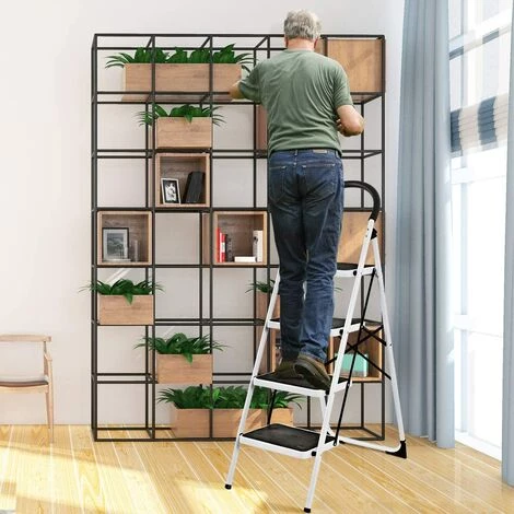 - 【Platzsparendes Klappdesign】Diese Stufenleiter lässt sich nach Gebrauch bequem zusammenklappen und so leicht in kleinen Nischen verstauen. Der komfortable Abstand zwischen den Stufen mit einer Gesamthöhe von über einem Meter ermöglicht Ihnen hierbei ein einfaches Bewältigen höherliegender Arbeiten.