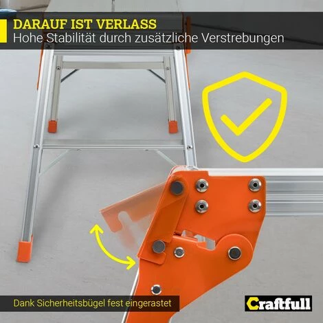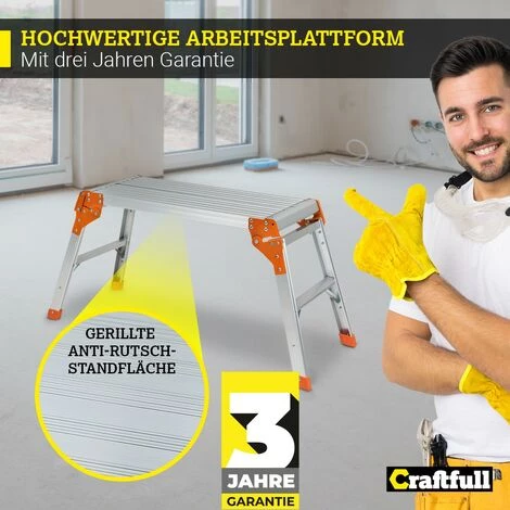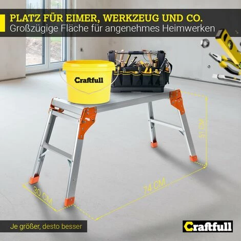 Mit der Craftfull Arbeitsplattform CF-107A erreichen Sie jedes hochgesteckte Ziel. Holen Sie sich jetzt die Aluminium-Plattform als praktische Arbeitshilfe ins Haus!