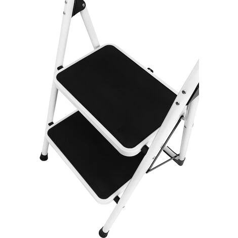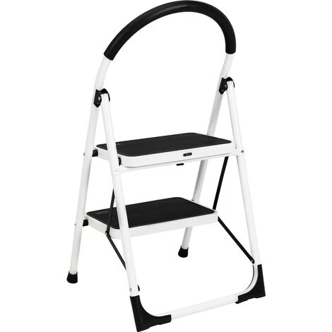 Sicherheit: Gummierter Haltegriff für sicheren Halt, Gummierte Standfüße, Gummierte Anti-Rutsch-Trittfläche, Zusätzliche Verstrebungen für erhöhte Stabilität, Sicherheitsriegel verhindert unbeabsichtigtes Zusammenklappen