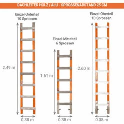 LEITER EXPERTEN – MATISERE Dachdeckerleiter Mit Holzprofilen 3m, Sprossenabstand 25cm – DL12
