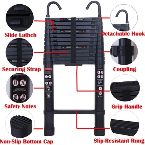 Diese 16,5 Fuß/5 m lange Teleskop-Aluminiumleiter ist der großartige Helfer sowohl für den Hausgebrauch im Innenbereich als auch für Aktivitäten im Freien. Erweiterbares Design, bequem zu bedienen und einfach zu transportieren. Die Leiter ist sicher und kompakt, zugelassen nach der europäischen Sicherheitsnorm EN131