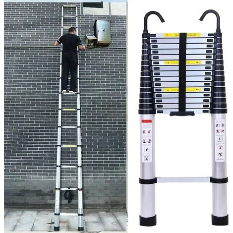 DAY PLUS 6.2m Teleskopleiter Aus Aluminium Mit 2 Abnehmbaren Haken, Verstellbare Dachbodenleiter Leiter Telescoping Ladder Max. Belastung 150kg/330lbs
