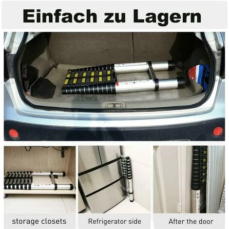DAY PLUS 6,2m Teleskopleiter Klappleiter Alu Mehrzweckleiter Mit 2 Haken, 15 Sprossen, Rutschfest Verlängerungsleiter, Anlegeleiter Aluminium Leiter Haushaltsleiter Für Outdoor & Indoor, Max 150kg Tragkraft