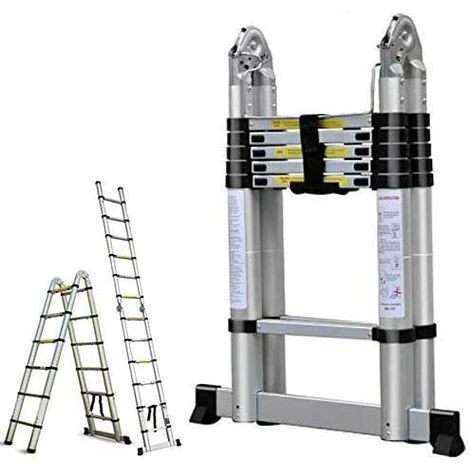 DAY PLUS Aluminium Teleskopleiter (2.5+2.5M)5M Mehrzweck Ausziehbare Trittleiter A-Rahmenleiter Schwere 150kg Tragfähigkeit