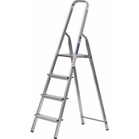 Die Stufen-Stehleiter findet sowohl im Haushalt, Keller und in ihrer Garage ihren Einsatz. Diese Leiter ist leicht zu transportieren, aufgrund ihres geringen Gewichtes und ist zudem sehr handlich. Die oberste Standfläche ist aus verzinktem Stahl gefertigt und besitzt eine Anti-Rutsch-Profilierung. Der hohe Sicherheits-Haltebügel bietet zusätzliche Sicherheit. Rutschsichere Standfüße sorgen dafür, dass die Leiter auch auf Fliesen und Parkett sicher steht. Geriffelte Aluminium-Stufen sind mit dem Holmen sicher vernietet. Durch die Riffelung sind solche Oberflächen sind besonders rutschsicher und dienen der Sicherheit der Nutzer.Geprüft nach DIN EN 131 für den privaten und gewerblichen Einsatz und bestens geeignet für Einsatz in GebäudenMax. Arbeitshöhe ca. 2,78 mrutschhemmende FußstopfenMaterial: AluminiumPlattform StahlHolm-Maß: 36 mm x 20 mmTritt-Tiefe: 80 mmim Innenbereich bestens einsetzbareinsetzbar als Stehleiter4 Stufen (inkl. oberer Stand-Plattform)max. Belastbarkeit: 150