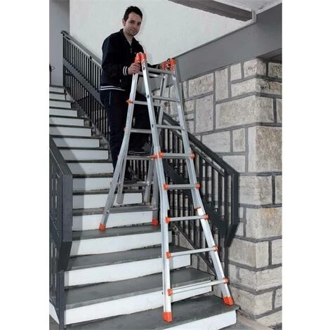 Aluminium-Teleskopleiter, kann im Doppelaufstieg oder in ausgefahrener Stütze verwendet werden, vielseitig und leicht und für jeden Bedarf geeignet. Bei Verwendung über 2 mt. ist die Leiter an einer sicheren Struktur oder mit einer Person am Boden zu befestigen, um den Bediener wie gesetzlich vorgeschrieben zu unterstützen. Gewichtskapazität max. 100kg Maximale Höhe 4,30 mt Gewicht 13 kg Nr. 4×4 Schritte. ***