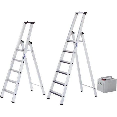 Gewicht: 12.5 kg, Plattformbreite: 250 mm, Plattformhöhe: 1845 mm, Senkrechte Höhe: 2515 mm, Stufentiefe: 80 mm, Wageplattformtiefe: 300 mm, Aufstieg: einseitig, Ausführung Aufstieg: Stufen, Ausstattung Leiter: mit Ablageschale, Gestellmaterial: Aluminium, Klappbar: Ja, Leiterntyp: Stehleiter, Preiseinheit: Stück, Stufenmaterial: Aluminium mit Anti-Rutsch-Riffelung