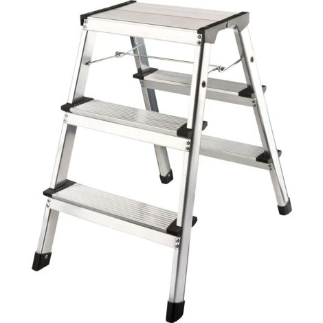 flexilife Aluminium Tritt / Leiter Trittleiter Klapptritt 2 x 3 Stufen bis 150 kg belastbar, Höhe: ca. 60 cm
