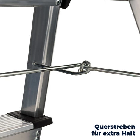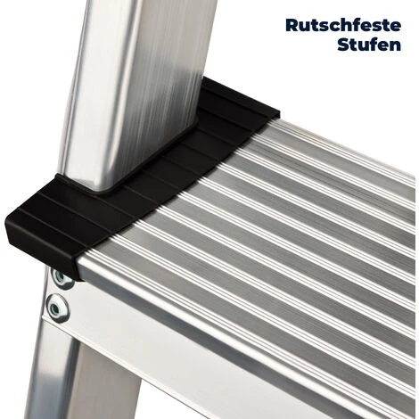 Die Trittleiter ist aus hochwertigem Aluminium gefertigt und wiegt lediglich ca. 2,7 kg.