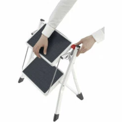 Sehr robuster und zweckmäßiger Tritt. Aufgeklappt erreicht der Klapptritt eine Höhe von 60 cm. Bei einer Körpergröße von 180 cm vergrößern Sie Ihre Arbeitshöhe auf ca 240 cm.