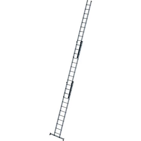 Dreiteilige Schiebeleiter mit 1,20m breiter Nivello-Traverse und beidseitig rutschsicheren nivello-Leiterschuhen für extra sicheren Stand und hohe Arbeitssicherheit.