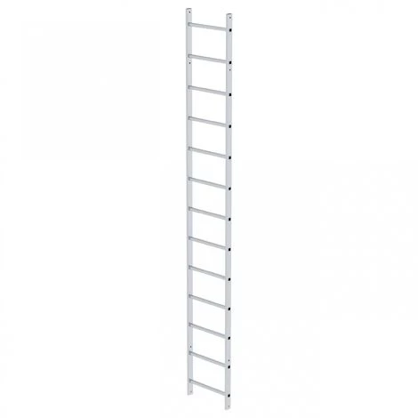 Sprossenausführung: Bei Alu eloxiert und Alu blank geriffelte Sprossen/ Bei Stahl verzinkt und Edelstahl Lochsprosse