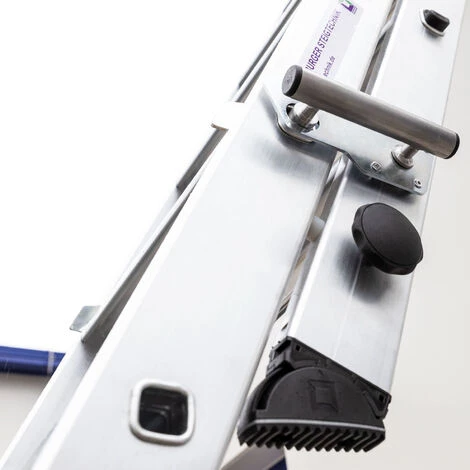 Schiebeleiter mit Stufen aus Aluminium, sowie nivello®-Traverse