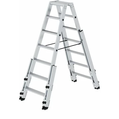 Treppengängige Stufen-Stehleiter, beidseitig begehbar.