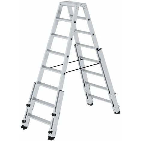 Treppengängige Stufen-Stehleiter, beidseitig begehbar.