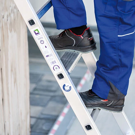 - Geriffelte Stufe für einen bequemen und ermüdungsfreien Stand zum Arbeiten gemäß TRBS 2121 Teil 2