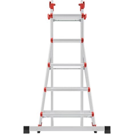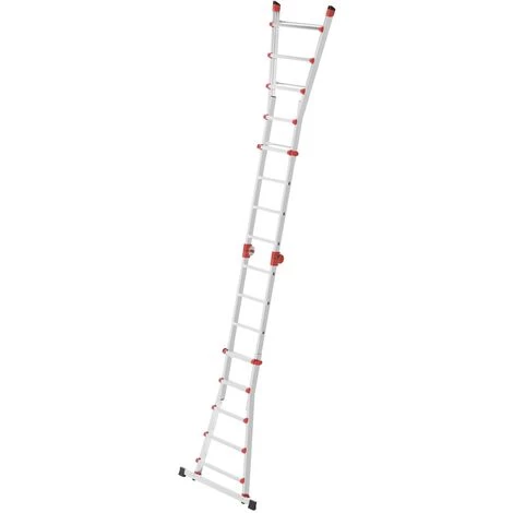 Die variierbare Alu-Multifunktionleiter. Zusammenschiebbar, mit Sicherheitsgelenken und Rastgriffen zur Höhenverstellung.