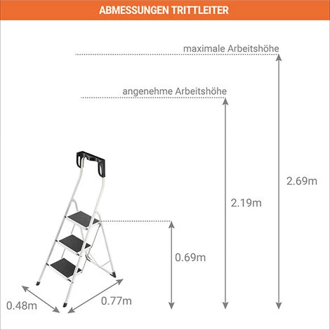 – Tritthöhe 69cm, Stufenabstand 23cm.