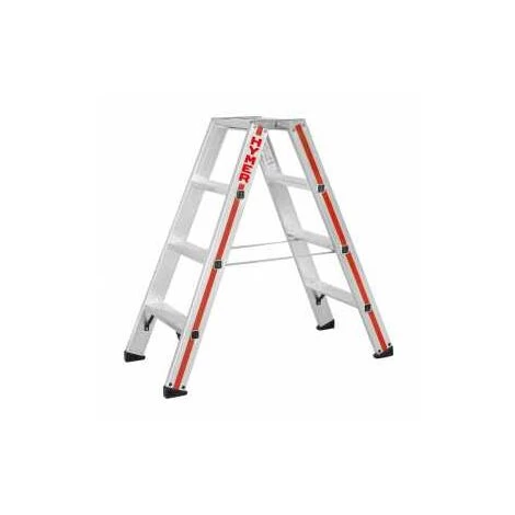 Langlebige Holme aus hochwertigem Strangpressprofil.Verwindungssteif durch verbördelte Holm-Stufen-Verbindung.Stufen aus stark profiliertem Strangpressprofil.Verstärkte Stufen mit 80 mm Stufentiefe. Vorderkante mit Holm bündig.Spreizsicherung durch hochfeste, 30 mm breite Perlongurte.Stabile Aussteifungsstreben am Antritt.Mit Holm verschraubte, leicht auswechselbare Leiterfüße mit großer Auflagefläche.Massive Gelenke aus Alu-Guss (leicht auswechselbar). | Eigenschaften: Holmhöhe: 71, Sprossenzahl: 80, Länge: 1 m, Standhöhe: 0,45 m, max. Arbeitshöhe: 1,95, Reichhöhe ca.:: 2,45, Senkrechte Gesamthöhe ca.:: 0,95, Breite: 450 m, Außenbreite: 355, Schrittlänge: 0,98, Gewicht: 5,6 kg, Verpackungsmaß Länge: 1,04, Verpackungsmaß Breite: 0,45, Verpackungsmaß Höhe: 0,20, Verpackung Volumen: 0,0936, Sprossenanzahl: 2 x 4, Werkstoff: Aluminium, Ausführung: Stufen, Anzahl Stufen: 2 × 4, Stufentiefe: 80 mm, Grundpreis: Nein, Arbeitshöhe: 1,95 m, Tragfähigkeit: 150 kg, Holm: 71 mm, Reichhöhe max.: 2,45 m, Gesamtbreite: 450 mm