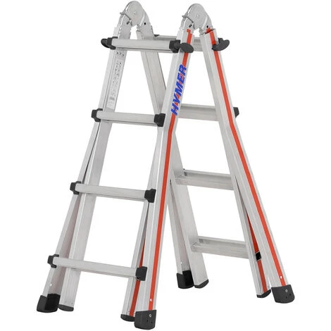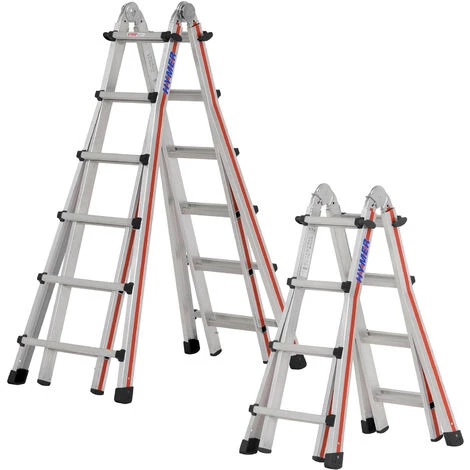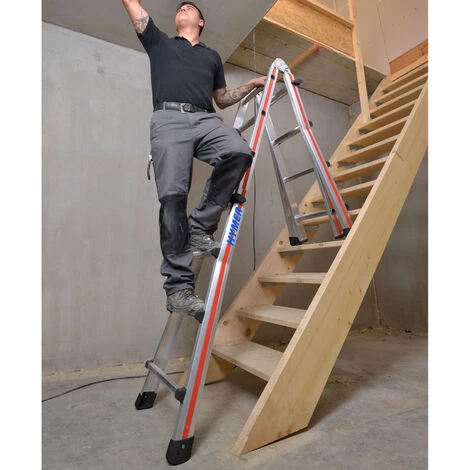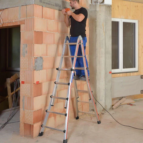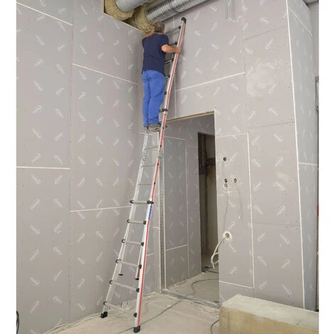 - Verwendbar als längenverstellbare Anlegeleiter, höhenverstellbare Stehleiter und Treppenstehleiter.