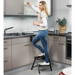 - Hartholzstufe als Werkzeugablage am oberen Leiternende
