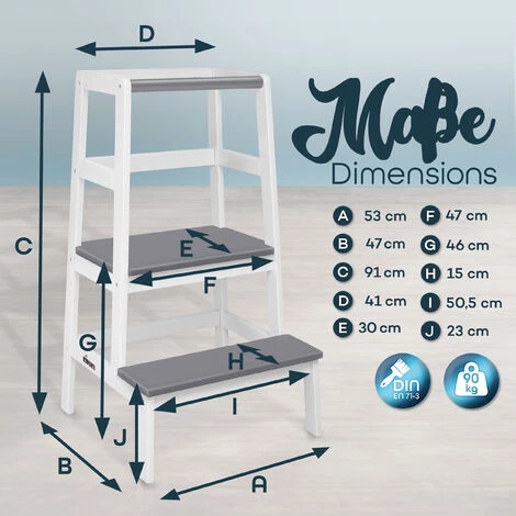 Der KIDUKU Lernturm erfüllt alle sicherheitstechnischen Anforderungen nach DIN EN 71-3. Die Lackierung ist lebensmittelecht und speichelfest . Zusätzlich angebrachte Querleisten sorgen für höchste Stabilität.