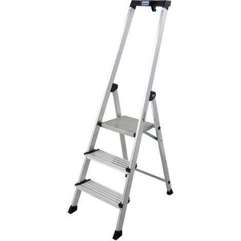Die komfortable und leichte Aluminium-Stehleiter mit extra hohem Sicherheitsbügel und vielen praktischen Ablagemöglichkeiten.