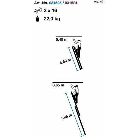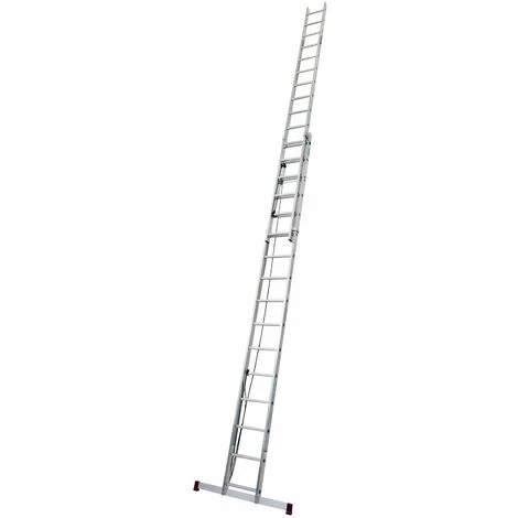Die zweiteilige Sprossenleiter ist als Schiebeleiter ausgelegt und für größere Arbeitshöhen geeignet. Gefertigt nach DIN EN 131. TÜV-geprüft. Maximal belastbar bis 150 kg.