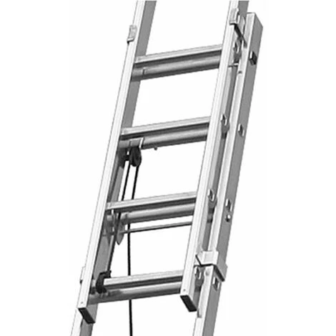 Die Seilzug-Schiebeleiter ist aus Aluminium hergestellt. Die Leiterfüsse sind mit rutschhemmenden Fuß-Stopfen versehen, um ungewolltes Wegrutschen zu verhindern. Die Sprossen sind rundum profiliert.