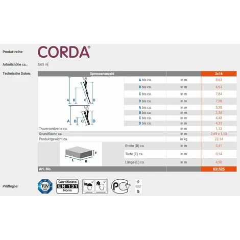 - Inkl. einer zusätzlichen Traverse entspr. DIN EN 131-1