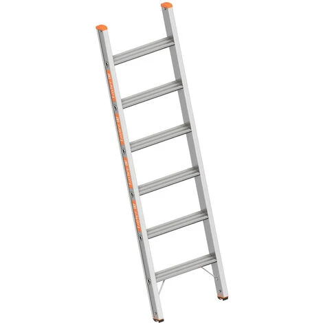 Anlegeleiter mit Stufen für eine breitere und längere Standfläche. Einfach im Gebrauch, höchstmögliche Sicherheit durch rutschhemmende Kunststoffschuhe.