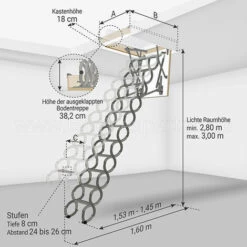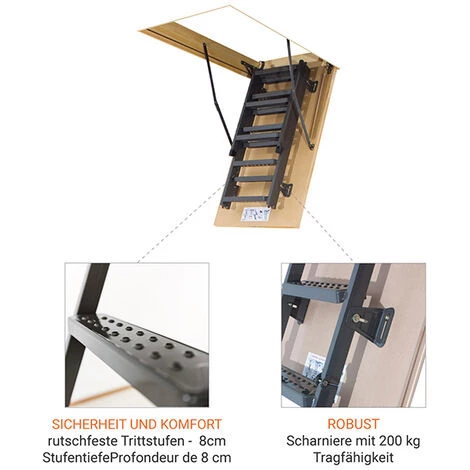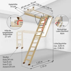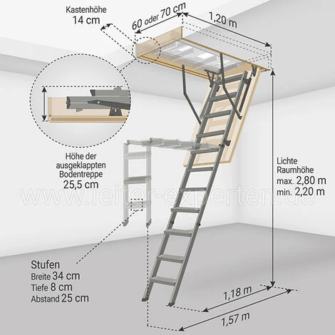 – Dachbodenleiter kann durch absägen der Holme an Ihre Raumhöhe angepasst werden.