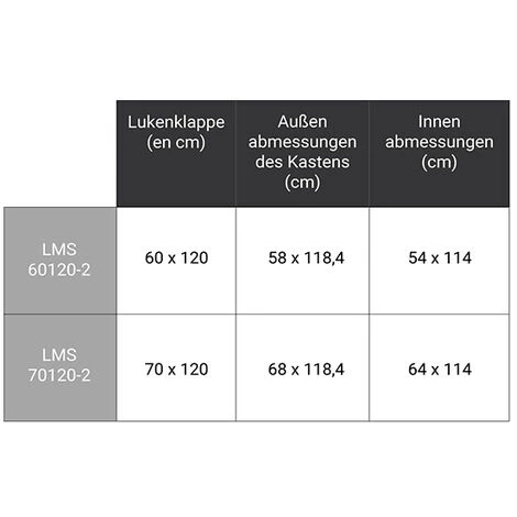 – Isolierte Lukenklappe mit Koeffizient 1.1 W/m²K, 3.6cm Dicke davon 3cm isolierend.