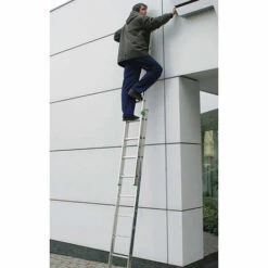 HINWEIS: In Deutschland darf eine Dachleiter nicht länger als 8 m sein. Bei einer Länge von mehr als 8 m stellen Sie bitte eine weitere Leiter daneben, um höher zu steigen.