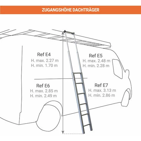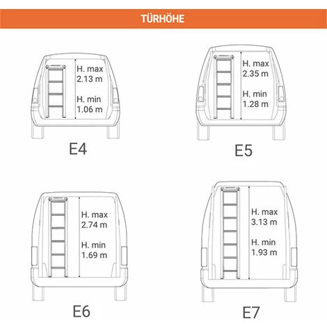 Die Leitermodellauswahl richtet sich nach der Höhe Ihres Fahrzeugs und seiner Tür (siehe Zeichnung).