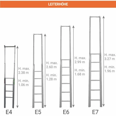 – Vier Modelle zur Abdeckung der gesamten Reihe an Nutzfahrzeugen: 4, 5, 6, oder 7 Sprossen – je nach Fahrzeughöhe.
