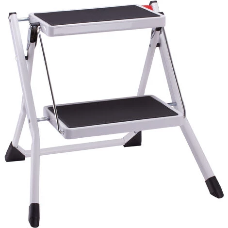 Das ist der perfekte Begleiter für Ihren Haushalt. Ob im Keller, auf dem Dachboden, in den Wohnbereichen oder auch im Büro – überall sind Utensilien in den höher gelegenen Bereichen verstaut. Um an diese mühelos heranzukommen benötigt man eine Alltagshilfe. Dieser Klapptritt mit zwei Stufen ermöglicht es Ihnen auch diese oberen Bereiche mühelos zu erlangen, nimmt aber dank der vorhandenen Klappfunktion bei Nichtgebrauch sehr wenig Platz weg. Die zwei Stufen sind mit einer Gummierung überzogen um Ausrutschen zu vermeiden.