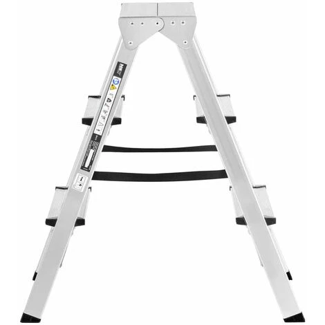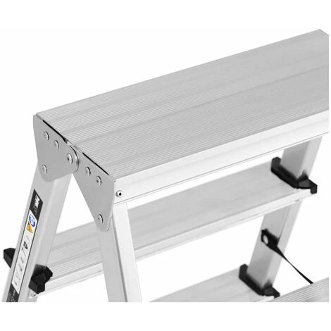 Die Trittleiter MSW_AK23E von MSW ist eine leichtgewichtige und faltbare Leiter aus Aluminium, die in keiner Werkstatteinrichtung fehlen sollte. Dank ihrer 2 x 3 Sprossen kann sie für diverse Handwerks-, Reparatur- und Malerarbeiten in geringer Höhe verwendet werden. Die Klappleiter ist bereits vollständig zusammengebaut und kann direkt eingesetzt werden! Ideal für jedes Geschäft oder Büro, aber auch für Küche oder Garage im Eigenheim. Die Alu Klappleiter hat in beiden Holmen jeweils drei stabile Sprossen, die an ihren Verankerungen extra fixiert sind. Die zwei obersten Sprossen bilden zusammen eine Arbeitsplattform mit den Maßen 13,1 x 36,5 cm für einen bequemen Stand! Die Alu-Leiter mit einer Belastbarkeit von bis zu 150 kg lässt sich dank einer praktischen Spreizsicherung fest in seiner A-förmigen Position verankern. Dadurch bleibt der Klapptritt während der Anwendung stets in stabiler Form und erlaubt ein sicheres wie auch bequemes Auf- und Absteigen. Zudem sorgen die vier rutschfesten Füße der Leiter für Standsicherheit. Durch diese Schutzmaßnahme werden mögliche Risiken während der Benutzung auf ein Minimum reduziert. Die Spreizleiter hat eine robuste Konstruktion aus Aluminium, das sehr widerstandsfähig gegenüber Rost und langlebig ist. Darüber hinaus ist Aluminium besonders leicht und lässt sich ganz einfach reinigen sowie instand halten. Durch ihr funktionelles Design kann die faltbare Leiter mit nur einer Hand geöffnet und geschlossen werden! Sie entspricht der Norm EN131.
