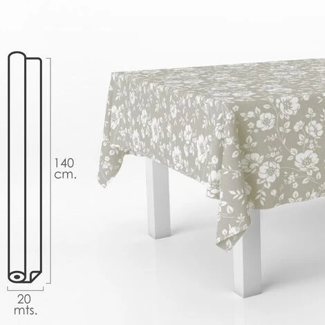 Anti-Flecken-Tischdeckenrolle 140 cm. x 20 Meter. Weiße Blumen
