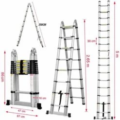 HALOYO Aluminium 5M Multifunktionsleiter Mehrzweckleiter Gelenkleiter Leiter