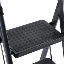 JN.SONGS Trittleiter Aus Aluminium 3 Stufen Klapptritt Mit Rutschfesten Füßen, Belastbar Bis 150 Kg, Schwarz