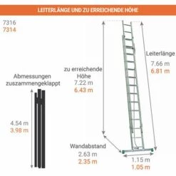 LEITER EXPERTEN – MATISERE Aluminium Seilzugleiter Mit Stabilisierendem Fuss 5,10m Lang – P320-2F