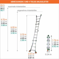 LEITER EXPERTEN – MATISERE Alu Mehrzweckleiter 4m – 2-teilig Und Selbsttragend, 2×14 – 7514