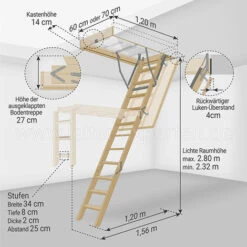 LEITER EXPERTEN – MATISERE Bodentreppe Holz – Deckenöffnung 70 X 140cm – LDK70140/305
