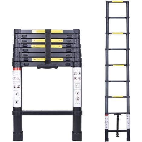 Material: Teleskopleiter aus einer hochwertigen Aluminiumlegierung. Höhe der Teleskopleiter: 2,6m.
